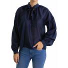 Camicia con collo alla coreana ricamato e laccio