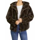 Giacca con cappuccio e zip frontale reversibile in similpelliccia Please